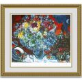 『恋人たちの花束』は、色彩の魔術師の異名を持つマルクシャガールらしさが存分に表現されている一枚です。様々な色を使用しているにも関わらず、絵に統一感があるのはさすがシャガールといった印象を受けることでしょう。存在感のある中央の大きな花束の左下には恋人たちが描かれています。優しげな微笑みを浮かべる二人は、見ている人を穏やかな気持ちにさせてくれます。右側に描かれているのは音楽隊でしょうか。幸せそうな二人を祝福しているのかもしれません。幸福感につつまれたこちらの作品は、ご結婚された方へのお祝いとしてもぴったりです。玄関に飾れば訪れる方を華やかに出迎えてくれますし、リビングに飾るとそれだけで素敵な空間を彩ってくれることでしょう。