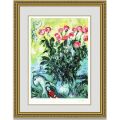 色彩の魔術師として世界でも知られているシャガールの「薔薇」は、その幻想的なタッチと色彩のやわらかさで、見る人の心を和ませてくれます。咲き誇る大輪の薔薇が入った花瓶と、その花瓶に寄り添って守っているかのような馬、そして馬に寄り添って愛を語り合う幸福そうな2人とのコントラストが心を温めてくれるのです。咲ききっていない薔薇の美しさが、これからの愛を象徴しているかのようで、天で祝福している天使たちの姿とともに、見た瞬間忘れられない絵となっています。ご家庭の玄関で飾られることで、その家の玄関のグレードをアップしてくれることもさながら、結婚を決めたカップルが式場でプランなどを相談させていただく場所でも、ご覧になった方々が、将来をより幸せなものとなる予感に包んでくれるでしょう。