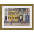 ミッシェルドラクロワの「AuMoulindeParis」という作品は、パリの街角の楽しい雰囲気を変に気取った雰囲気ではなく、普通の日常として取り入れた作品です。パリらしい鮮やかな青い扉が印象的な店先や、立ち話をしているご婦人、風船を欲しがる子供達がいたりと、パリの日常が自然に描かれています。全体的にはそれほど明るいタッチの作品ではないのですが、風船や花などに赤色がところどころに描かれていることにより、平凡な日常ながらも穏やかな楽しい雰囲気を出しています。派手な作品でないこともあり、飾る場所も選ばす、どのようなインテリアのご家庭でも気軽に飾っていただける作品です。日常的に見ても飽きず、子供がいるご家庭などにも似合う絵画だといえるでしょう。
