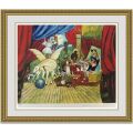 パブロピカソの「シアター」は、劇場の舞台を切り取った色合い豊かな作品です。幾何学模様の衣装をまとった団員やカラフルな梯子、ペガサスなど実にメルヘンチックに描かれています。無いものをあるように、またあるものを無いように描くピカソの作風とは違い、立体感を持たせたカーテンや今にも笑い声や談笑が聞こえてきそうな表情など、この作品からはリアリティーを感じずにはいられません。十人十色の個性があるように、絵に登場する人物にも個性を感じられ、楽し気な雰囲気が伝わってきます。人が集まるリビングに飾ると、お部屋がにぎやかになるでしょう。登場人物が多い賑やかな作品で、色合いも鮮やかです。絵画購入で迷った時に安心して買える1作です。