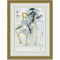サルバドールダリの「ピカドール」は、馬にまたがった闘牛士の勇ましい様子を美しいカラーで表現したアート作品です。ピカドールは闘牛士のことで、闘牛場で大勢の観客を前に馬に乗り、荒れ狂う牛を刺すパフォーマンスを繰り広げる人のことです。ダリの故郷であるスペインで、人々が熱狂する闘牛の一コマを牛ではなく、ピカドールに光を当てて描いたものです。一歩間違えば牛に倒されてしまうピカドールの凛々しくも堂々たる様子が、黒にピンクのアクセントを入れて美しく描かれています。槍の先には血が滴っており、決闘を終え意気揚々と馬を闊歩させているところかもしれません。白い馬には神々しいゴールドが配され、その様子を物語っているようです。デザイン性に優れ、絶妙な色合いの華のある作品です。