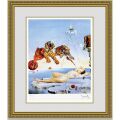 サルバドールダリの「Second Before Awakening」は、目を覚ます1秒前を描いたユニークな作品です。夢を見ている女性が起きる直前の瞬間を描いたもので、眠っている女性の周りに描かれているものは夢の中の情景と推察されます。裸体の女性の上を虎が飛んでいたり、しかも、その虎が魚の口から飛び出し、その魚はパックリと割れたザクロの実から飛び出している、こうした情景は通常では想像しにくい光景です。ですが、覚醒する直前と分かれば、夢の中の世界を描いたのだなということが想像でき、楽しくなってくるのではないでしょうか。夢というのはしばしば不思議なあり得ない世界を見るものです。その様子をアートに描く、ユーモアあふれる作品といえるでしょう。