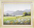 油彩画 沢井美里朝の花畑 F6 額縁付き